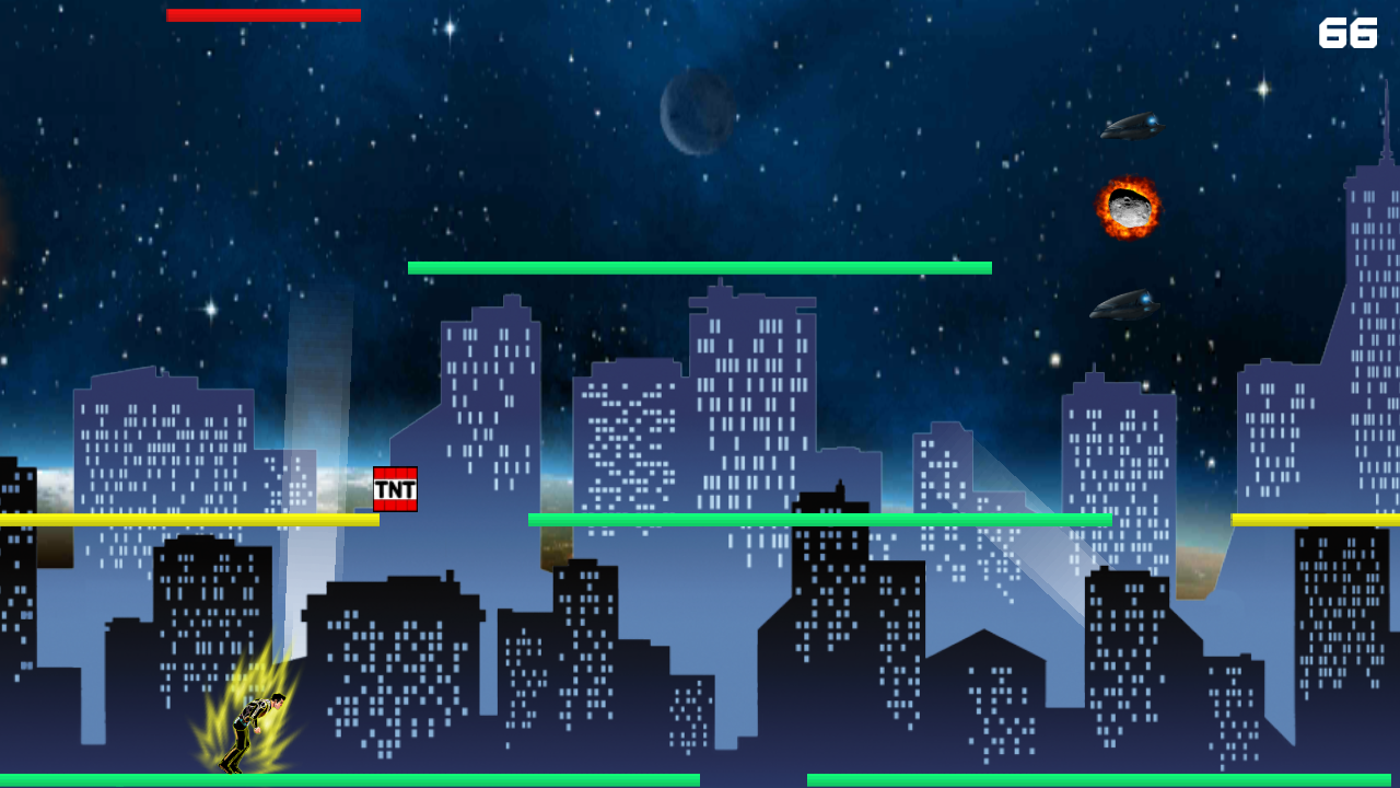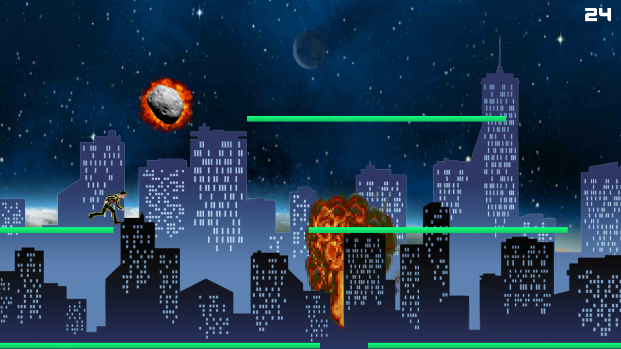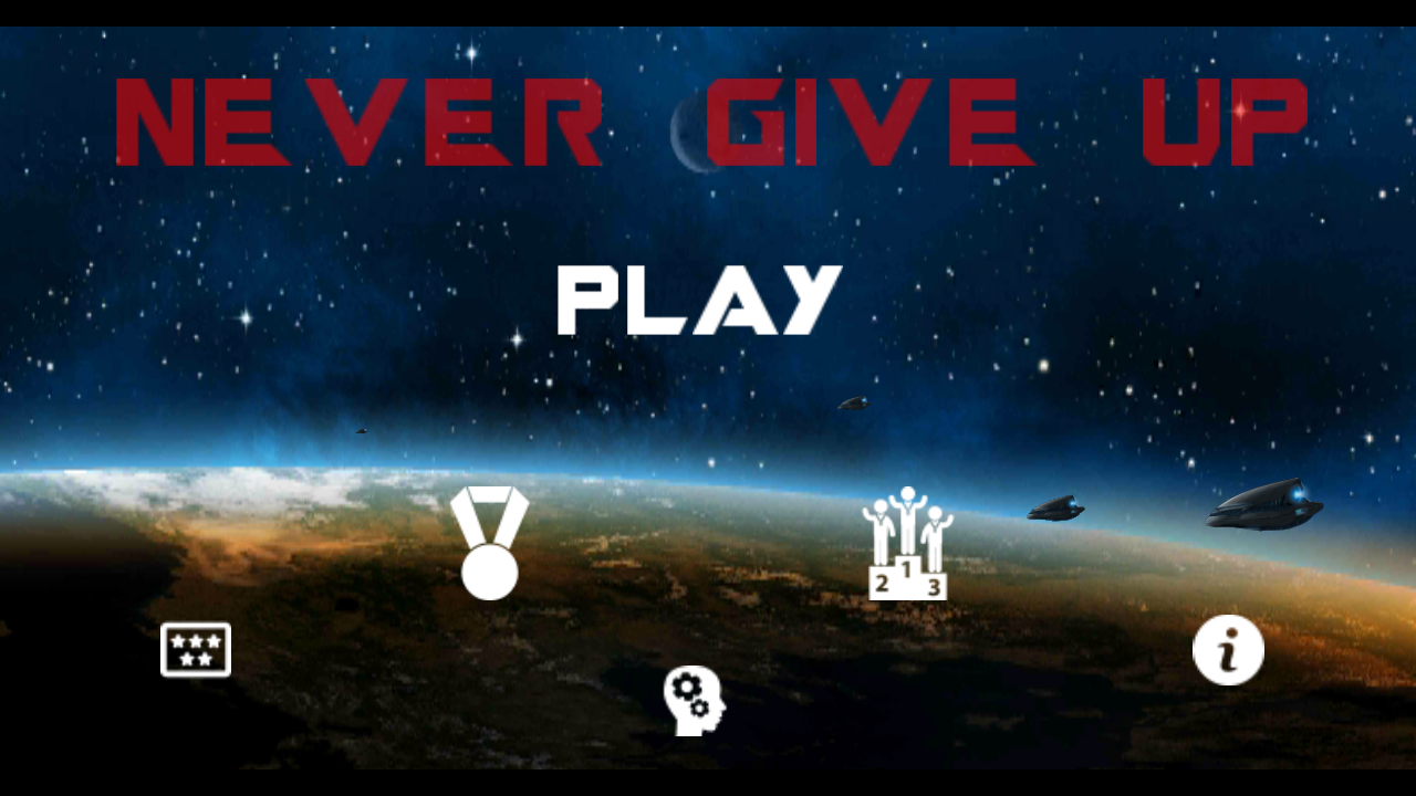 El planeta Kepler de la galaxia NGC 221, tu hogar, esta siendo atacada por una civilización desconocida, el apocalípsis esta cerca. La única opción de supervivencia, es ir al planeta vecino en un transbordador espacial, para ello tendrás que correr y saltar entre las pocas plataformas que aún quedan en pie. NUNCA TE RINDAS. Never Give Up, es un juego adictivo de plataformas a alta velocidad, en el que tienes que esquivar meteoritos y explosivos mientras no caes al vacío absoluto. Para conseguirlo, tienes a tu alcance las siguientes habilidades: