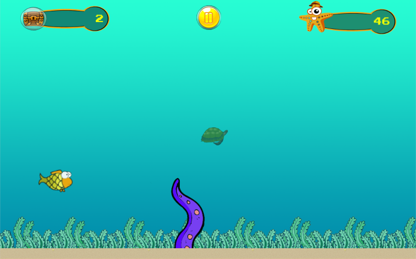 Goldie fish es un juego divertido donde en nuestra aventura nuestro protagonista tiene que ir sorteando los obstaculos cada vez con mas dificultad, donde acumularemos un score y unos cofres que seran nuestra moneda para cambiar por oportunidades en la maquina de la suerte "jackpot" donde ganaremos premios en dinero real y tambien personajes que estaran en las peceras 24 horas y luego nos daran mas cofres para seguir intentando ganar mas dinero.