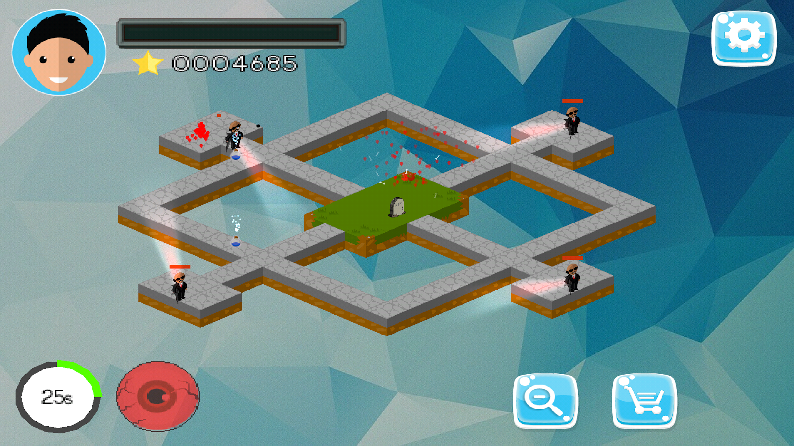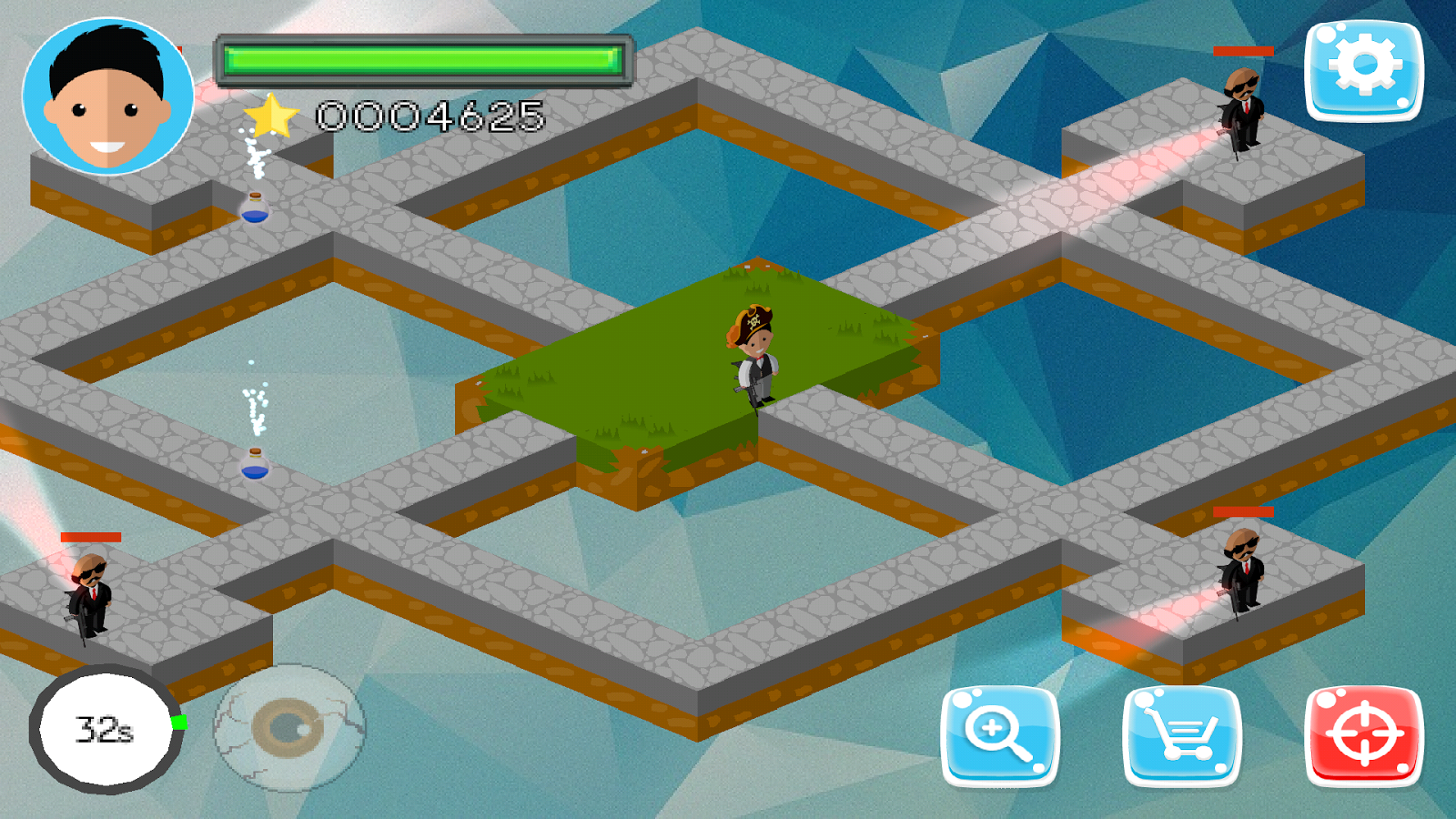 Destroza los guardias, captura y elimina monstruos, recoge tesoros, elije tu estrategia para obtener la mayor cantidad de puntaje disponible.