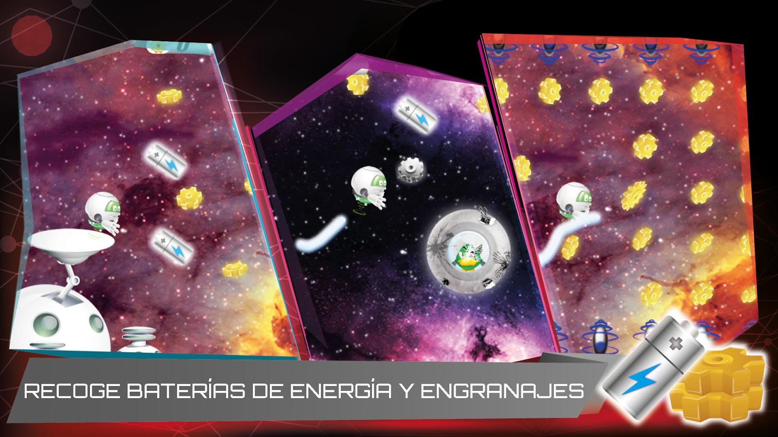 Ayuda al robot a viajar por agujeros negros, a destruir asteroides y a moverse a través de los 5 mundos diferentes y disfruta de los mas de 50 niveles llenos de trepidante acción.